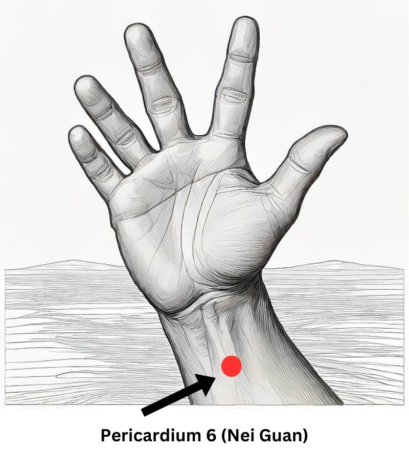 Nei Guan is famous for its ability to ease nausea and motion sickness, but it’s also highly effective for calming anxiety and reducing tension in the chest.