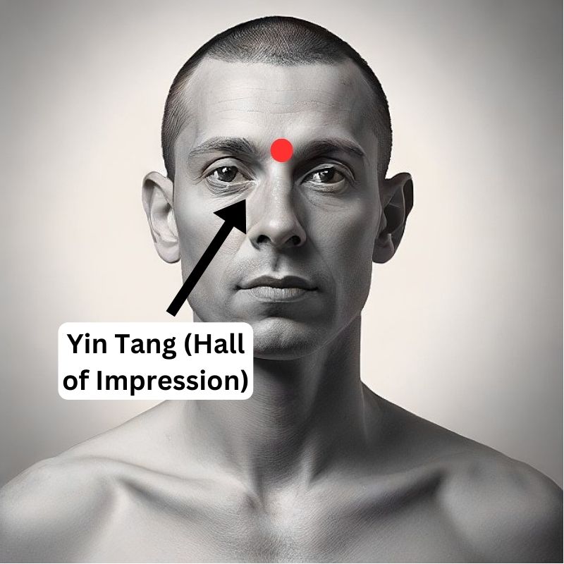The Yin Tang point is commonly known as the “third eye” and is associated with deep relaxation and mental clarity. Gently pressing this point can help reduce stress, quiet an overactive mind, and promote better sleep.